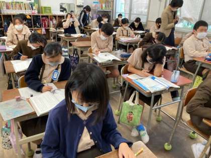 今日から2組が、この単元に入りました。今日は、物語の特徴や心情描写についておさえたあと、初めの感想を書きました。