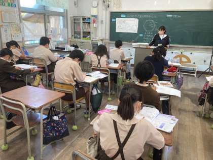 コンパスを使って正六角形をかきました。昨日は、分度器を使ってかいたのですが、コンパスの方がかきやすいと子どもたち。何故コンパスでかくことができるのか、考え、半径の長さを使ってかいたことから、正三角形の特徴をふりかえりました。