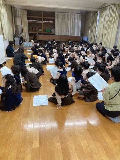 学習発表会の練習をキッズルームで行いました。国語科で学習した「サラダでげんき」を少しふくらませながら発表します。