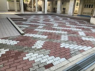 管理作業員さんが、高圧洗浄機を使って、講堂前をきれいにしてくれました。