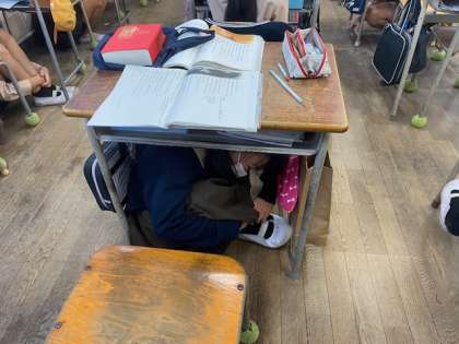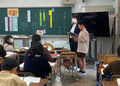 第二場面と第一場面の作戦を比べながら読みました。仕掛けた小屋の大きさの描写に気づき、動作化で確かめました。何か月も前から準備しておいた作戦が失敗したじいさんの心情を書いて、まとめました。