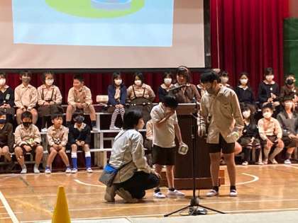 4年生は、社会科総合の学習で調べたりまとめたりしたことを発表します。「4年生のSDGs宣言」を寸劇も入れて、水とごみなどの環境問題を提案します。
