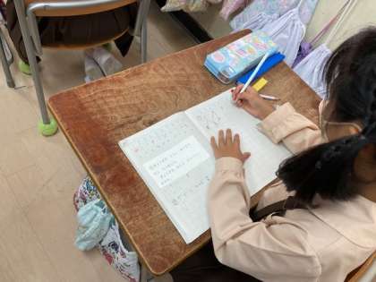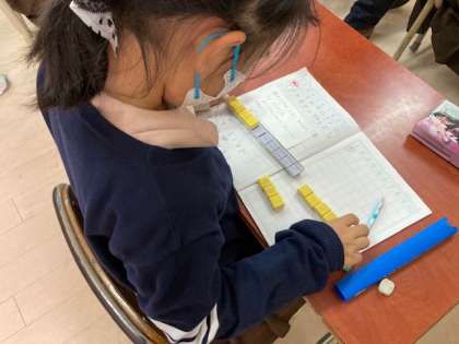 くり下がりのあるひき算は、初めてです。どうやって計算をするか、まず一人で考え、ペア同士で伝え合いました。