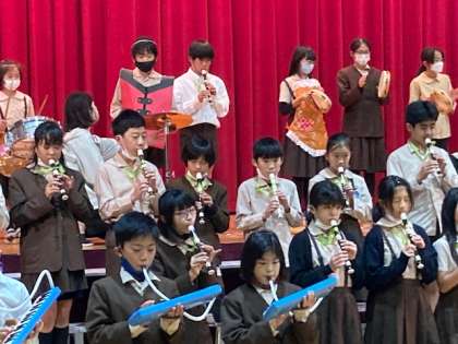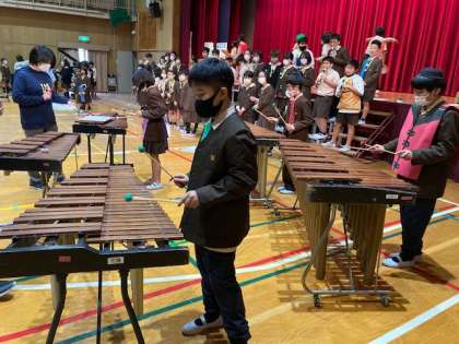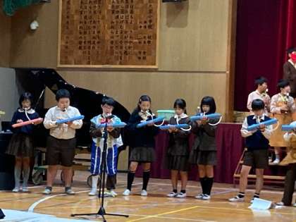 学習発表会の練習です。衣装をつけてやってみました。最後に「キリマンジャロ」を演奏します。衣装も工夫があり、なかなかわいいですよ!