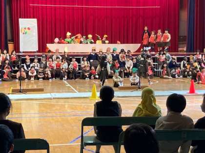 「大きな声が出ていてすごい」「楽しそう!サラダの中の野菜がしゃべっていておもしろい。」などの感想をもらいました。明日は、リハーサルです。