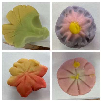 和菓子は、大宮商店街の寳来堂さんにお願いして、日頃工夫されていることや、実際に三角べらを使って和菓子を使っておられるところなどを動画で見せていただきました。今日は、八種類の秋を感じさせる和菓子を提供してくださいました。抹茶は、旭区更生保護女性会の皆様が、用意してくださいました。