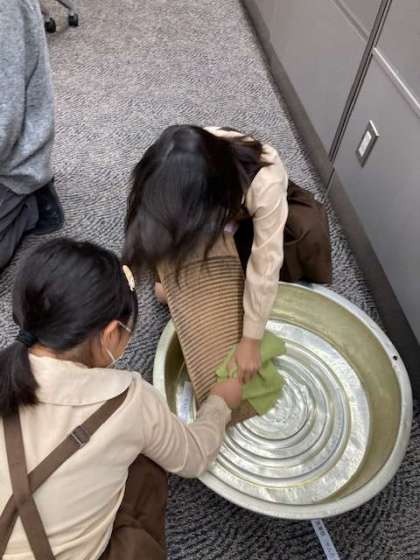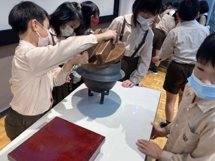 くらしの今昔館に行きました。初めに説明を聞いたあと、羽釜や洗濯機、洗濯板、炊飯器など昔の道具を触らせてもらいました。