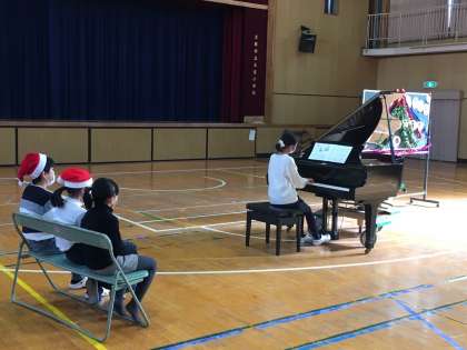 普段見られない子ども達の姿。友達の演奏に聞き入ったり、大きなピアノに触れて、音を楽しんでいます!