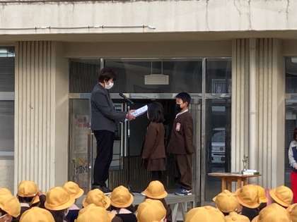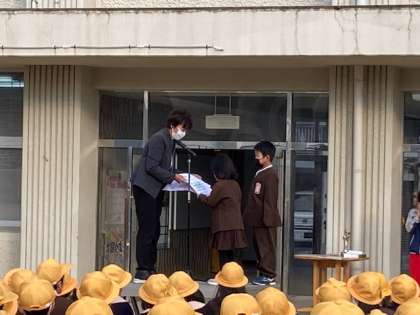 2年の転入生の紹介しました。その後、空手で優勝したり、優秀選手賞をもらった人を紹介しました。