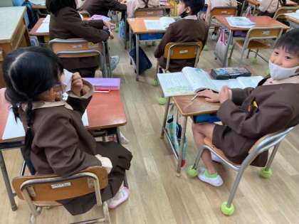 荷物が届いた時のチロの気持ちを考えました。文章からわかることや、自分の経験などと比べて考えていきました。