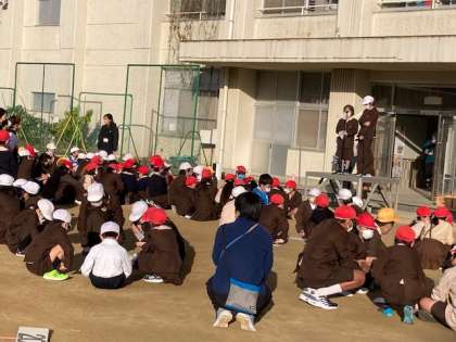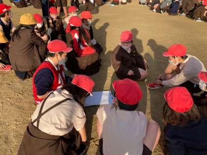 集会委員会会によるなぞなぞゲームでした。班のみんなで協力して答えを出しました。