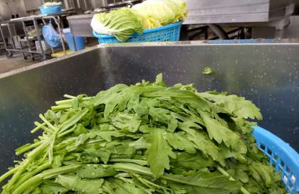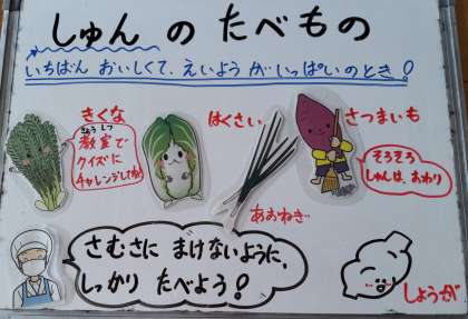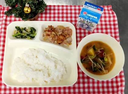 今日は豚肉のしょうが焼き、さつまいものみそ汁、きくなと白菜のごま和え、ご飯、牛乳でした。