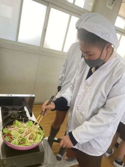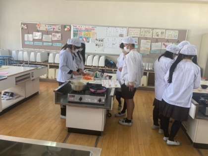 楽しみにしていた調理実習を行いました。今回は、自分たちで作りたいメニューを選び計画を立てました。「おいしい!」と笑顔いっぱいで食べました。