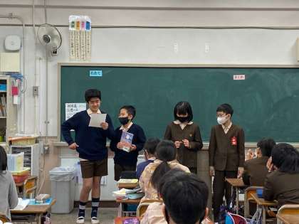 班でテーマを決めてテーマに沿った本を持ち寄り、クラスのみんなに紹介しました。