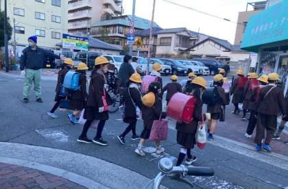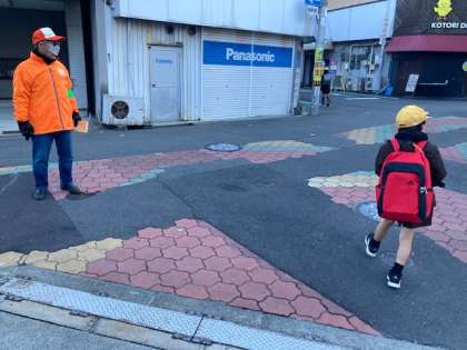 今日は終業式、2学期最後の登校です。一段と冷えました。早くから見守りをしてくださっています。本校の管理作業員さんも、誘導してくれています。