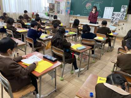 3学期の目標をかいたり、明日からの学習の説明を聞いたりしました。