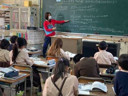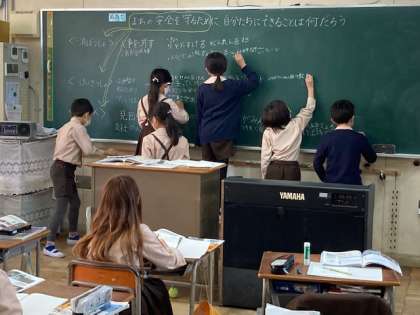 町の安全を守るために自分達ができることは何か、調べ、考えて黒板に記入していきました。消防署や警察署、そして見守り隊の方々など、自分達のまわりには、たくさん町を守ってくださっている方がいてくださることを再認識しました。