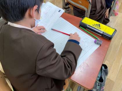 「みみずのたいそう」の詩を読んだ後、視写をしていきました。少しずつゆっくり丁寧に書こうと頑張っています。