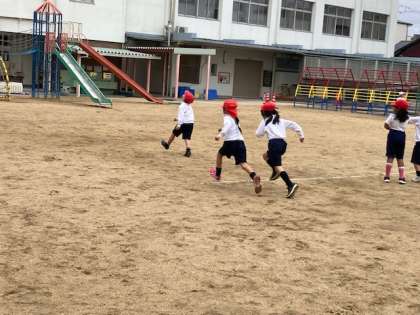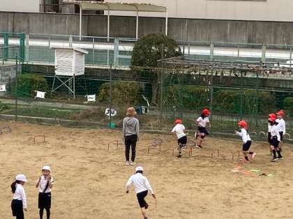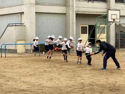 大縄やミニバートルなどを使って跳んだり走ったりして元気に動き回りました!