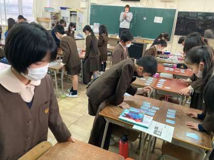 教科書に百人一首が出てきます。五色の札を使って、練習をしました。