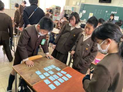 百人一首をしました。今は青色の札だけで挑戦です。上の句も下の句のどちらも覚えてすぐ札を取る子もいます。