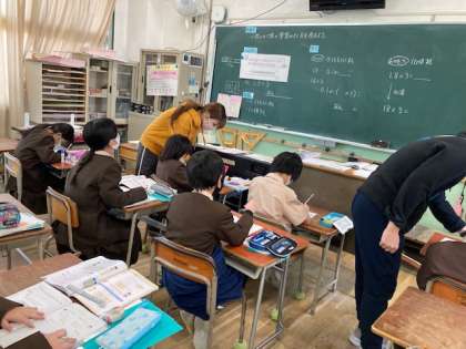 小数のかけ算、わり算の仕方を考え、筆算で計算していきました。