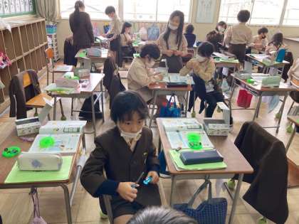 磁石に付くものと付かないものを調べました。ハサミの持ち手のところでも、プラスチックなのになぜ付くところがあるのか考えました。身のま回りのふしぎを解決していきます。