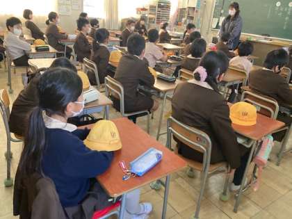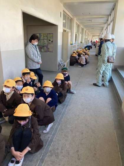 続いて津波警報発令の避難訓練をしました。それぞれ北、東校舎の3階に避難しました。