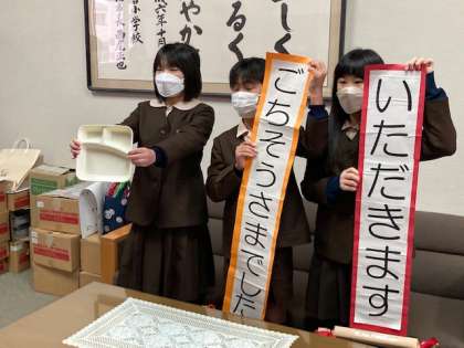 給食委員会から、「給食週間」についてのお知らせがありました。感謝の気持ちを込めて、「いただきます」「ごちそうさま」を伝えるとともに、食器なども丁寧に扱って、調理員さんへの気持ちを表しましょうと呼びかけました。