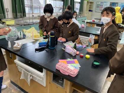 科学工作クラブは入浴剤を、家庭科クラブは小物を!そしてマンガ・イラストクラブは、好きなキャラクターを描いて、プラバンを作りました。