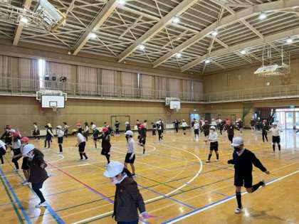 15分休みに音楽に合わせてなわとびをしています。今日は特に寒いので、しっかりと体を温めました。