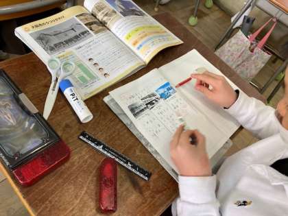 昔の大阪市について学習しました。大阪駅の様子の移り変わりを調べました。