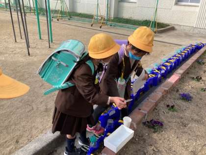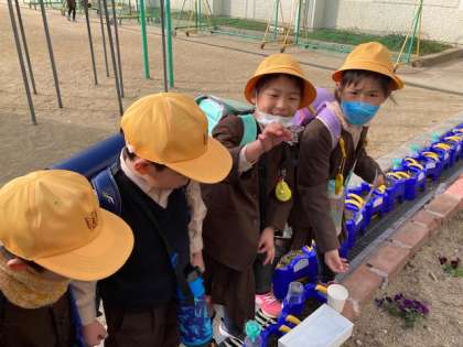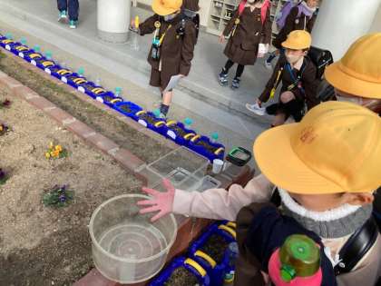 さようならをした後、朝できていた氷の入れ物を見ていました。まだ少し氷が残っている水槽などもありました。「明日も氷ができてるといいな。」と言いながら帰って行きました。