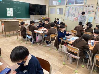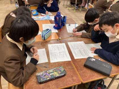 旭図書館に見学に行きました。帰ってから、図書館新聞の記事を書きました。