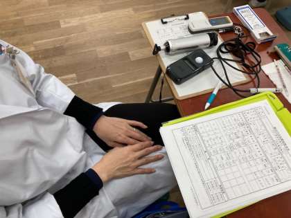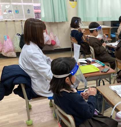 学校薬剤師のN先生に、教室内の空気環境を調べていただきました。1年生の音楽の学習時間45分間、調べてくださいました。結果は特に問題はなしとの事。気温は低いですが、上の窓を少し対角線で開けたり、休み時間には窓を開放したりしています。