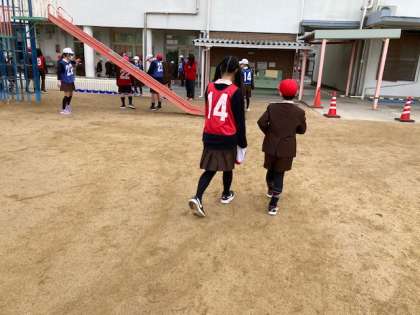 集会が終わると6年生は、1年生を教室まで送って行きます。