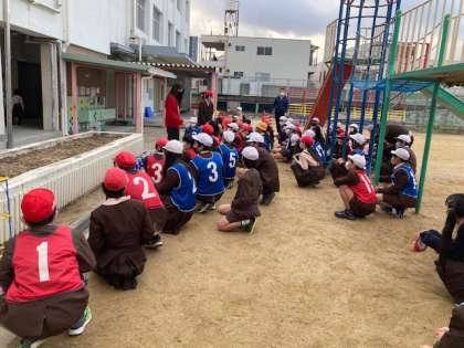 学年全体で、縦割り班のリーダーや6年生としてどうだったか、振り返りをしています。
