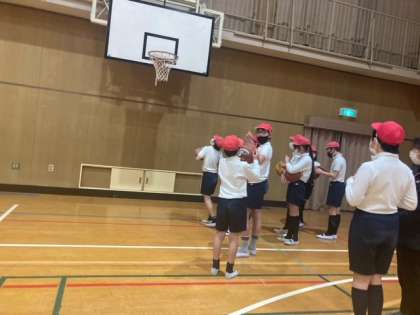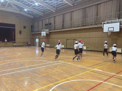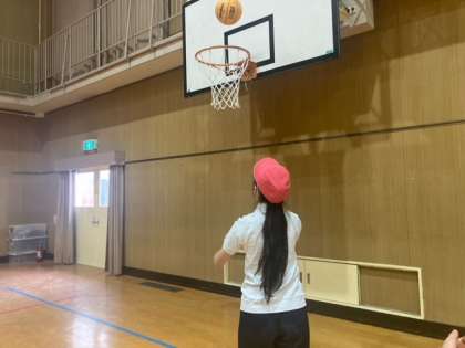 バスケットボールのシュートやドリブルの練習をし、最後に少しだけゲームをしました。