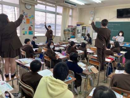 水の温まり方を学習した子ども達。空気はどのようにして温まるのか予想しました。そして高さや場所を変えて、温度を調べてみました。