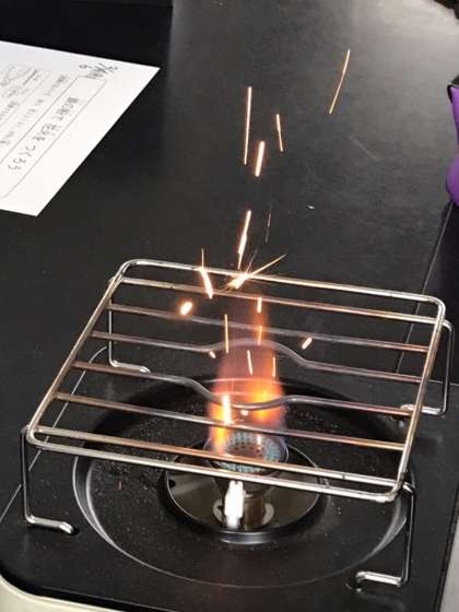 クラブ最終日で、「鉄粉花火」をしました。キラキラときれいな花火を作り、全員成功です。