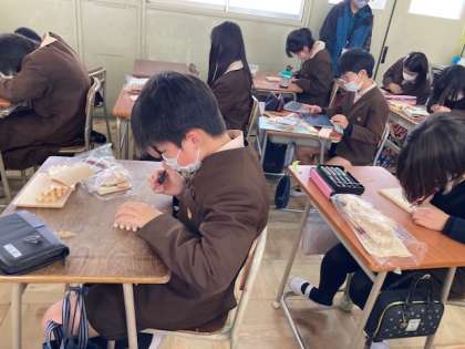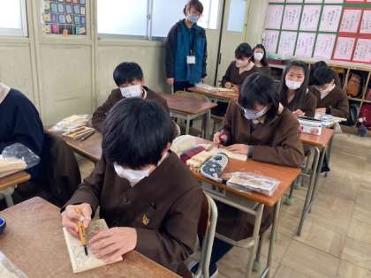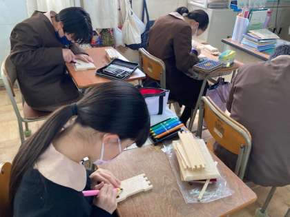 オルゴールの蓋や側面の部分に彫刻をしています。思い思いの絵柄、図案で下絵を描き、彫っています。