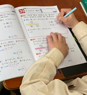 文章問題を、テープ図を使って考えました。何を求めるのか、わかっている数字はどれか考え、テープ図に記入していきました。