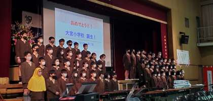 児童を代表して参加した6年生が「喜びの言葉」で大宮小学校の歴史や、地域にお世話になっていることへの感謝の気持ちを述べました。