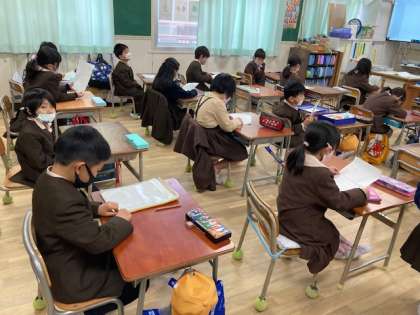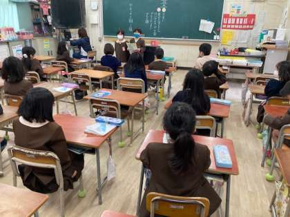 日直さんがスピーチをしたり、先生からの連絡を聞いたりしています。