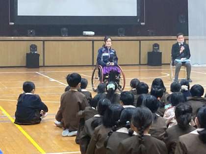 また、中学時代の先生からは、いつも見学していた体育の時間、「やってみないか」と言われ、グラウンドを始めて走った事などを話されました。ダンスも出会いがあり、自分でやりたいと決めて始めたそうです。「チャンスをくれた時、やってみようとすることが大切」と体験を通して教えていただきました。