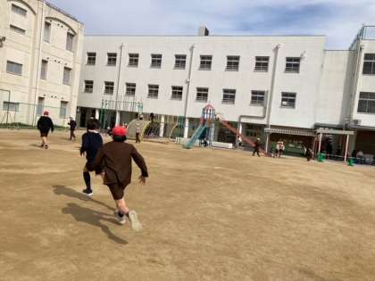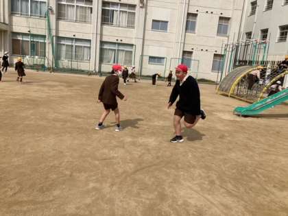 みんなあそびでケイドロをしました。毎週、遊び係の児童が遊びの内容やチーム分けを考えてくれます。卒業までにたくさん思い出を作りましょう。