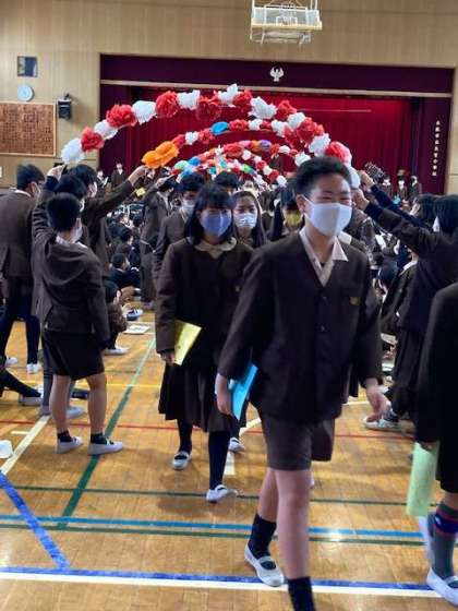 終わりの言葉を代表が述べ、拍手で6年生を送りました。