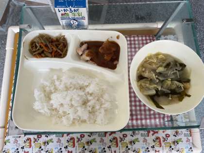 今日は、鶏肉のみそバターソース、五目汁、きんぴらごぼう、ご飯、牛乳でした。
