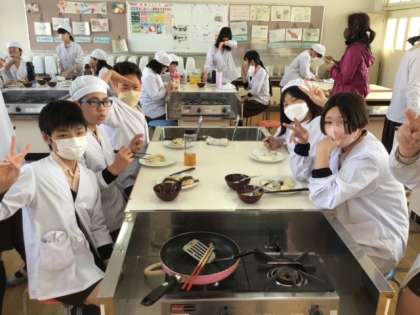 先日のお楽しみ調理実習の様子です。好きなトッピングをして焼いて食べました。