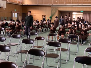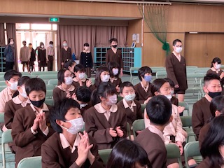 入場から練習を行いました。今年から在校生代表として、5年生も参加します。